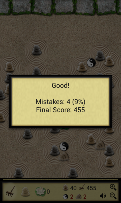 وظیفه شما این است برای باز کردن تمام سلول های خالی قرار داده و سنگ را به سلول ها با نماد یین یانگ (شما باید قبل از قرار دادن یک سنگ باز کردن سلول). با این حال، بر خلاف کشتی مین جمع کن، بازی می کند در اشتباه اول به پایان نیست، اما شما جریمه دریافت کنید. سنگ به اشتباه قرار داده شده نمی تواند حذف شود، شما همچنین می خواهد مجازات برای آنها است.