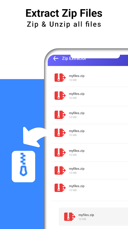 In this zip unzip tool you can extract and unzip files, archive or unarchive 7zip files, rar files, and other compressed files. RAR extractor supports WinZip format, zip viewer, rar archiver and file extractor for smartphones. Combine several files into a single zipped folder without losing the quality of files. if you want to convert all files into zip files and make a simple document and easily share then this zip manager and zip maker is a perfect application for you.
