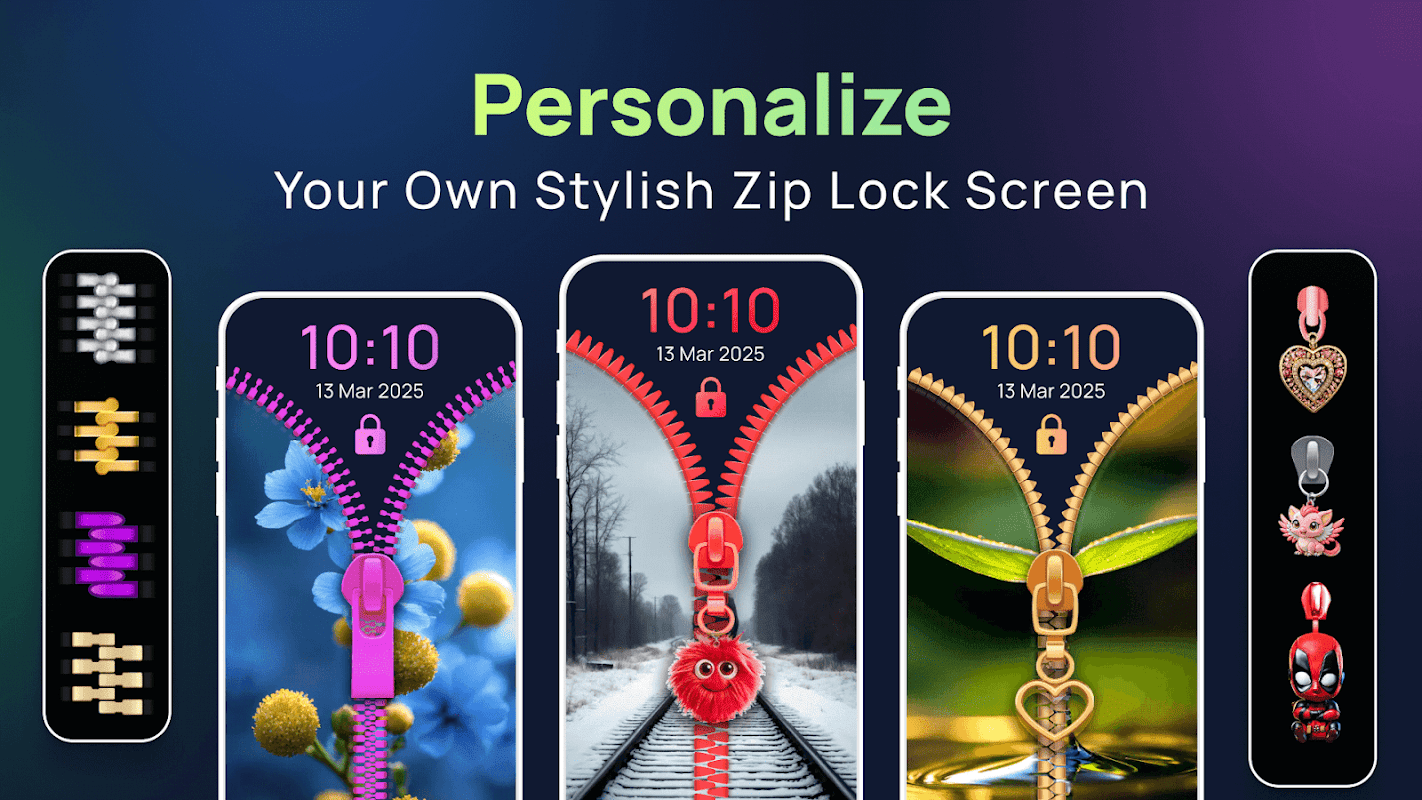 سبک قفل تلفن خود را با زیپ و تم های پس زمینه جالب شخصی سازی کنید.