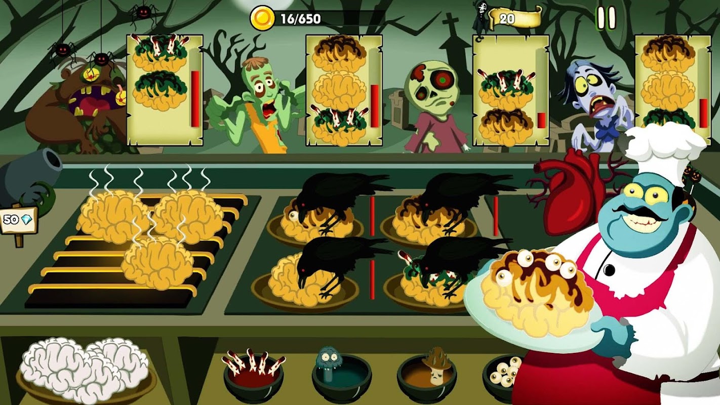 In this ancient town that was forgotten by civilization, a large number of zombies appeared. The player played a chef and opened a restaurant in this ancient town. Different zombie customers have different needs. They like crunchy fingers, brain burgers, snail pizzas, bats, octopuses, or other more horrible foods. The chef needs to quickly meet the orders of zombies.