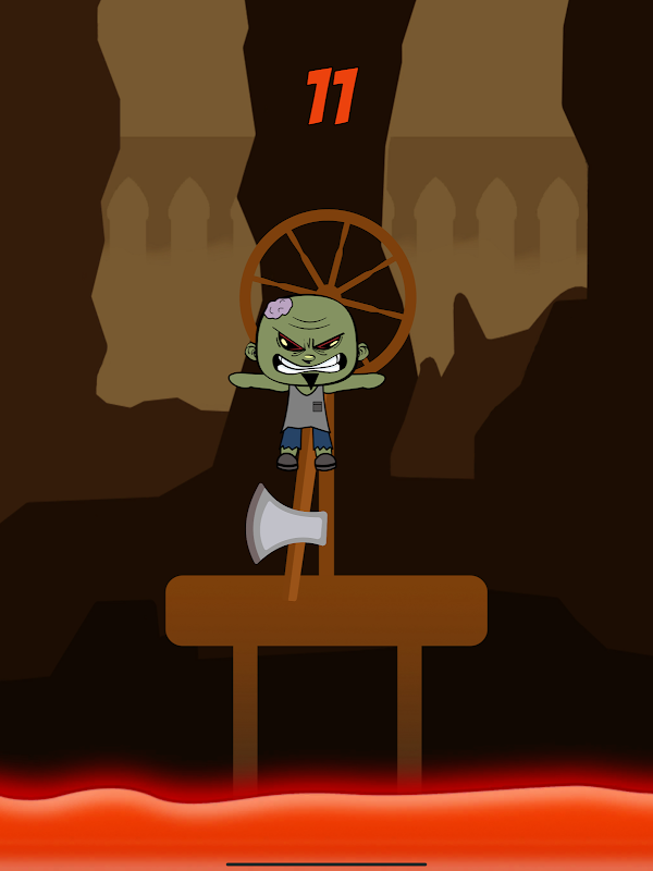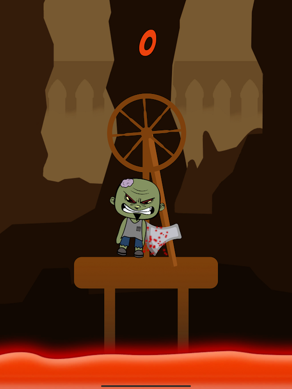 The poor Zombie is stuck in a mine on a platform, with a crafty axe swinging at him!