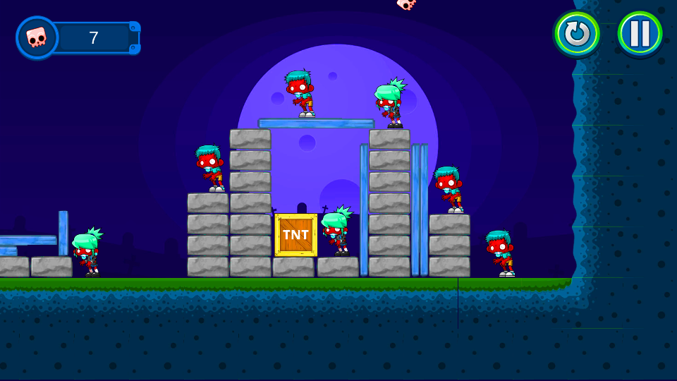 Challenge your skills by adjusting the traction, drag the skull to shoot all zombies of each level.