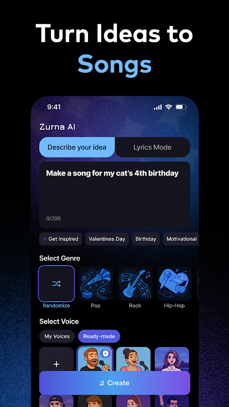 اشعار خود را بنویسید، یا فقط به ما بگویید چه می خواهید بگویید و ما آن را به یک آهنگ تبدیل می کنیم!