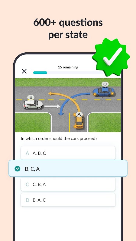 این اپلیکیشن با استفاده از کتابچه راهنمای خلاصه و آسان DMV و بیش از ۵۵۰ سوال خاص ایالت که تقریباً مشابه آزمون واقعی گواهینامه رانندگی هستند، قوانین جاده را به شما آموزش میدهد.