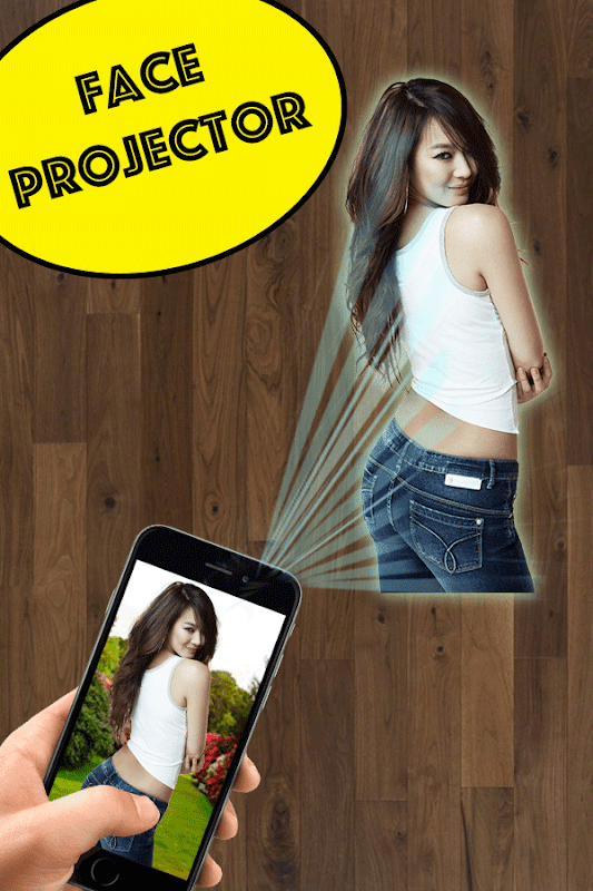 Face Projection Simulator Prank is a fun joke application! See the face projection of you or your loved ones, anywhere you want! View a face projection on the table, wall or even the sky!