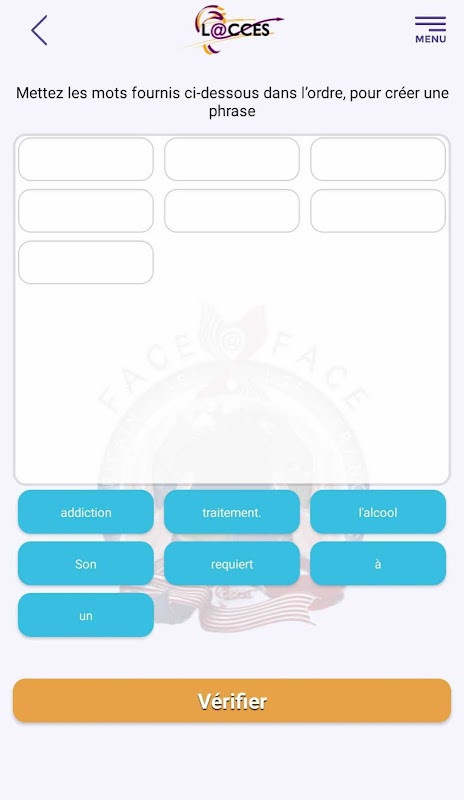 Users enter a word in French or English to access a database of phrases or sentences including the word under study. Today there are about 1500 entries. The initial data, to be enriched gradually, include pairs of words with similar written forms in French and English, such as French paire and English pair. This makes it easier for the learner to remember them visually. Those words have been selected also by using a frequency dictionary listing the most frequently used words in the language. Video clips, in LSF and ASL show equivalents of all words, phrases and sentences in both sign languages. All are accompanied by activities to cement the learning. Solutions to activities for A, B, C and D exercises are provided in the Application itself ; for C and D exercises , that can be done separately, users can also find solutions on the Consortium platform together with a new exercise E, to be followed by some more later on.