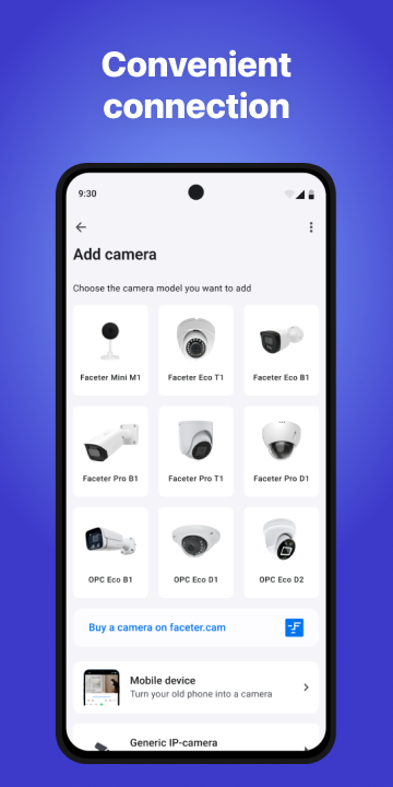Faceter is a flexible cloud-based video surveillance solution that works with IP cameras, DVRs, and even regular smartphones. Setup takes just a few minutes and requires no special equipment or complex software installation.
