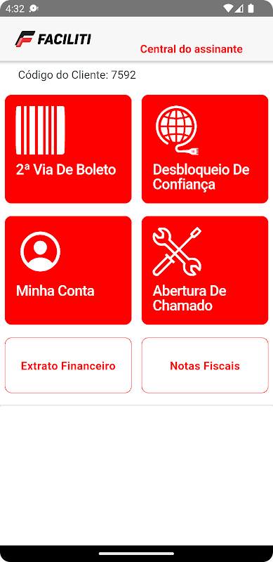 The Faciliti application brings you, the customer, much more agility in accessing information about your plan: with it you can issue duplicate slips, consult financial statements and invoices, request provisional license, update your registration data, among many others. functionalities. The application also facilitates the opening of technical calls for your services, bringing much more practicality to your day to day. It's Faciliti in the palm of your hand