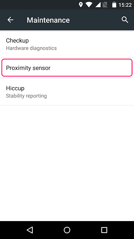 The Proximity Sensor tool is available under to Settings → Maintenance → Proximity sensor.