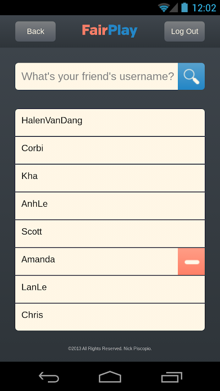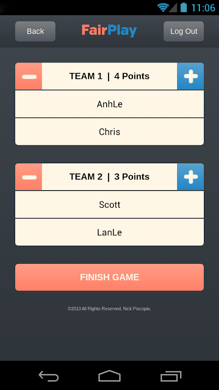 Never again will you need to write a score down on a piece of paper or pick names out of a hat. FairPlay will keep track of the scores for you and then update the database with the current statistics when done! A friend doesn't have to have the app to play in the game with you. He or she can be added as a guest and participate in the enjoyment of the game!