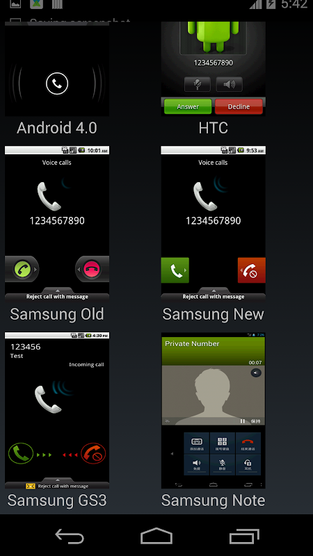 - Simulate Fake calling screen as real as your different phone: Samsung UI, HTC Sense,ICS, etc