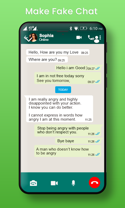 Fake Chat with girlfriend App is an Android screenshot app for users to prank friends and family with girls chat prank screenshots. Users can make their own choice of girls chat screenshots of audio and video calls on WhatsApp, Facebook, and Instagram according to their own choice.