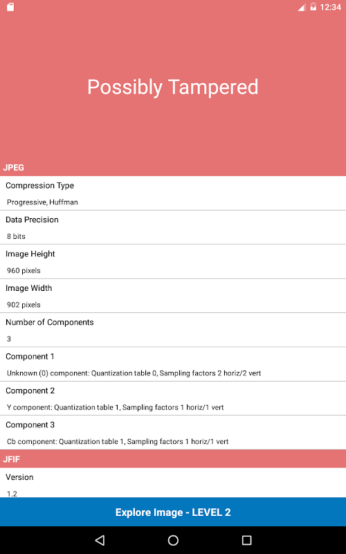 Fake Image Detector allows identifying fake images. By fake image, we mean the images that is altered using image manipulation software like Adobe Photoshop, Gimp etc. This app will be a great help to those who want to check authenticity of their photos. You can also identify which part of the image is faked or modified.
