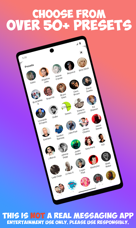 Pranks and Jokes: Pull hilarious pranks on your friends by sharing fake conversations with famous celebrities, politicians, or even fictional characters.