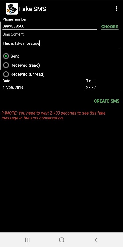 Let's try Fake SMS now!
