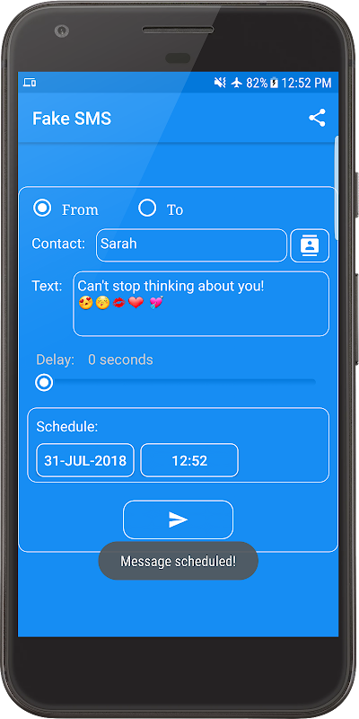 Fake SMS (Text Message) prank allows you to fake entire conversations with people in your contacts list or new names/phone numbers. This application will add text messages to your sms inbox or outbox. You can write anything you want, you will be the author so it is up to your imagination. Pick a contact, set the delay, date or time and send...