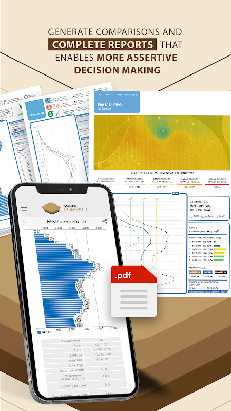Instant result: see results quickly through a graph of the soil compaction profile. See the details and settings for each measurement.