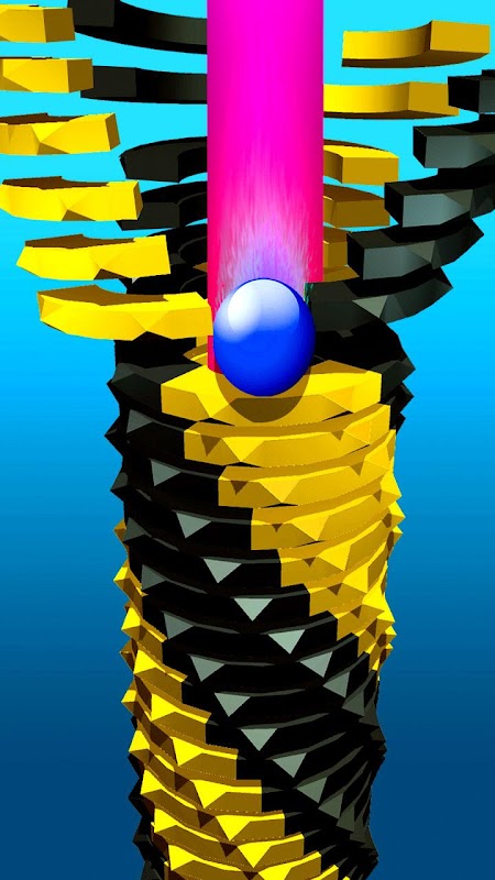 Press and hold on the screen and let the ball go down without touching the obstacles! Hold as long as possible to make combo and break the black blocks. Let the ball fall down from the helix stacks.