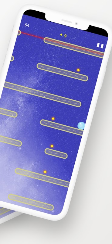 It's a fast-paced, addictive and simple game. To control the ball, touch the screen. Avoid the dead line by falling through the holes. The deadline will get closer and closer as time passes. Your score will increase the further you fall. To unlock additional characters and backgrounds, collect the crystals. The further you fall, the more crystals will you get.