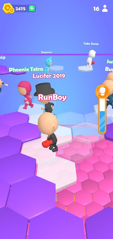 Welcome to Falling Floor.io! Your job is to survive as long as possible and not fall, and you are not the only one in this arena, you are not the only one on the hexa floor, you have 16 enemies with the hexa floor obstacles that will disappear after you pass it, besides that you are in Arm with a death fist weapon that you can use to throw enemies near you!