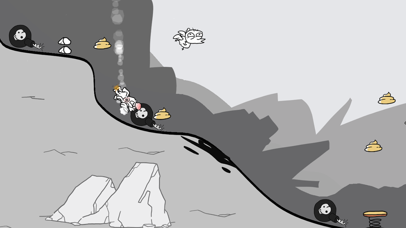 Collect as many poops as you can to upgrade his items and ramps as you learn to jump farther, while falling, launching, farting, and going as far as possible!
