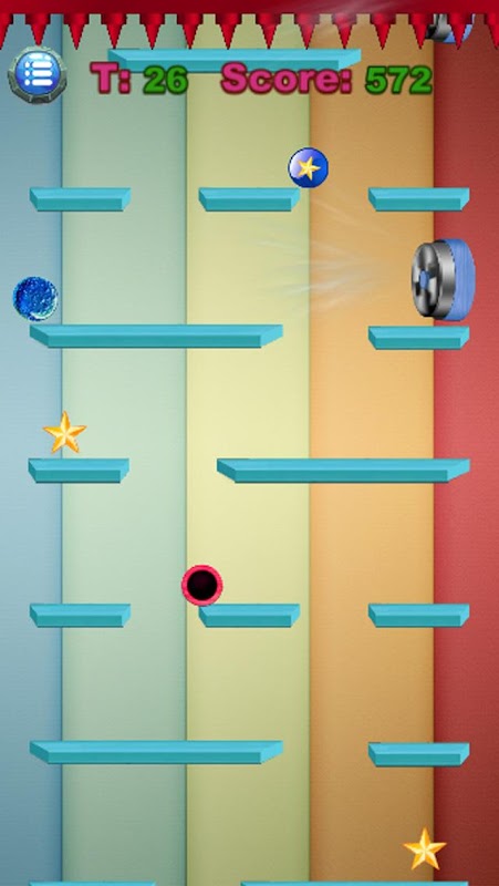 Falling Marble Ball is an endless game play which you make a marble ball fall down through a series of shelf gap by tilting your mobile device. The ball will take more speed gradually, you have to remain alert. At the end of falling marble ball game you will get to see the score. Challenge your own score with your family and friends and make new higher score every time! As time goes by, the falling marble ball game will speed up making it more difficult to fall the ball through the gaps in time. Also the moving shelf will make it harder to make the ball falling down.