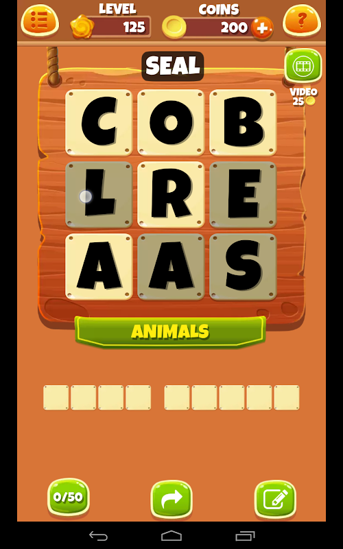 - Some words are valid words but not part of the solution to complete the level. Collect them and you'll get bonus coins.