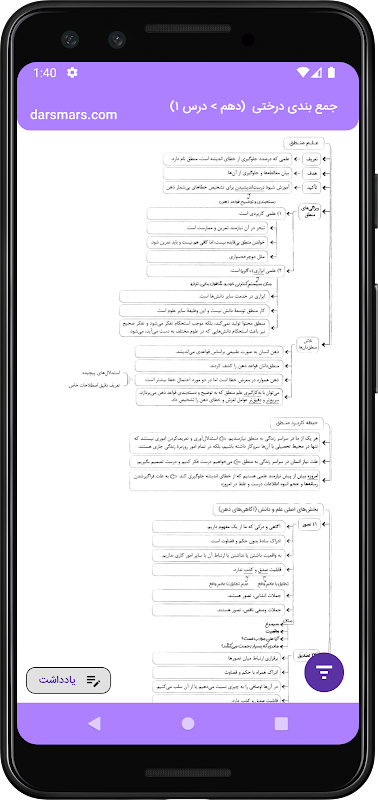 این بخش شامل درسنامه های جامع هر درس از سال دهم تا دوازدهم (به صورت مبحث به مبحث و تفکیک شده در قالب فلش کارت) بوده که علاوه بر درسنامه ها، تمام نکات کنکوری مربوط به هر مبحث نیز گردآوری شده است