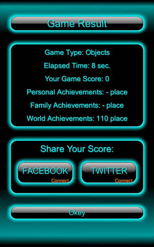 Family Memory Trainer has four games: Objects, Sequence, Matrix and Location. Each game trains different types of memory. In game Objects you need to memorize different objects. Game Objects is necessary for training of memorizing various objects, images, objects, things. In the game Sequence you need to memorize the buttons that appear one after the other. In the game Matrix you need to memorize all cells of given matrix. And in the game Location you need to memorize location of all targets on the screen.