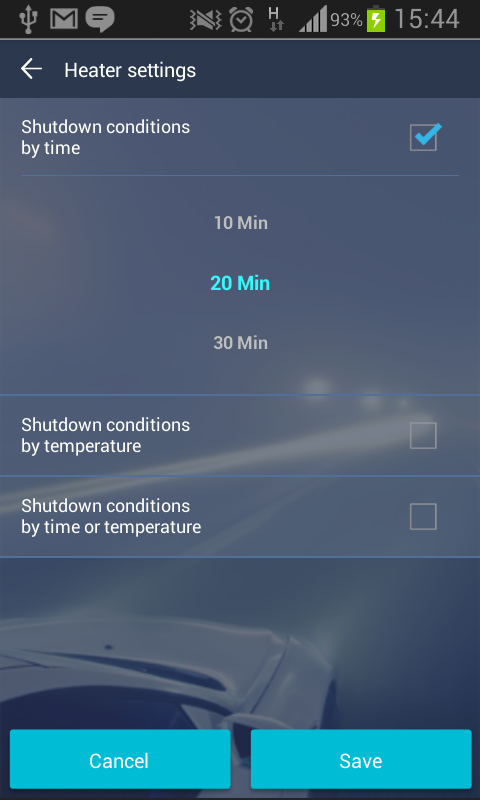 This application allows you to to launch heater with climate control system of your vehicle and see vehicle’s state with your smartphone.