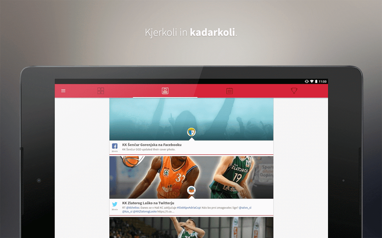 • Za nekatere športnike lahko spremljaš tudi koledar dogodkov, spremljaš rezultate v živo in statistike. Gol, koš, blok, zaostanek, uvrstitev. Vse najdeš. Ja, tudi za Matevža iz 4. košarkarske lige.