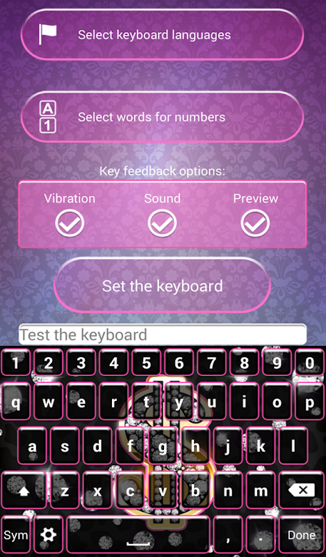 Choose the best among cute girly apps for your Android™ device, fancy apps like this one are a must, write on pics, type an SMS, do whatever you wish with your fancy coolkey letters, because fancy girl designs you can download here for free can make it possible to you! Popular apps like glow in the dark keyboard, or fancy neon keyboard changer with beautiful themes, are rich with glorious and shiny theme layouts, use your new keypad “theme changer” to change keypad color, customize your own phone, decorate your device with keyboard art fancy design for girls, use it as wallpaper too. It's time to go on texting in a luxurious fashion, download Fancy Custom Keyboard Layout and change the theme of your custom keypad!