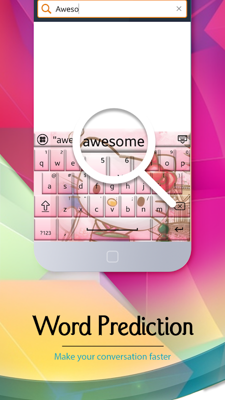 Offers creative themes, fancy typing fonts, multi languages, word predict & more