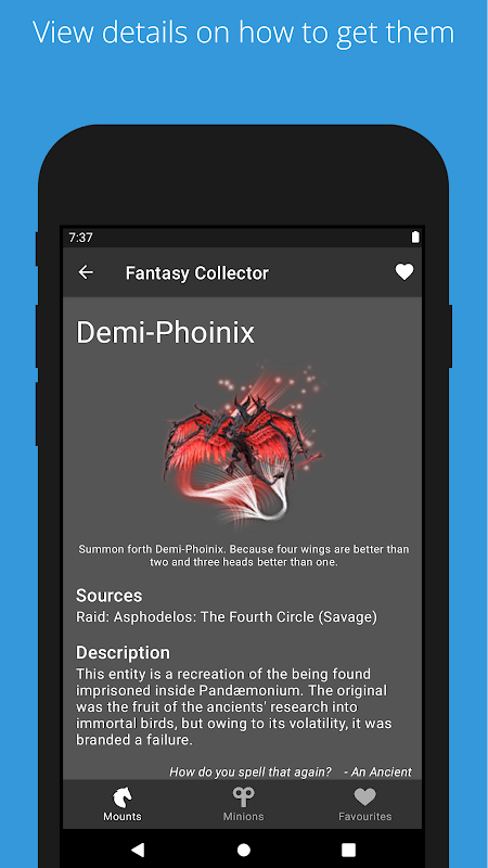 Fantasy Collector is a collection of all mounts and minions from a popular MMORPG whom we shall not name.