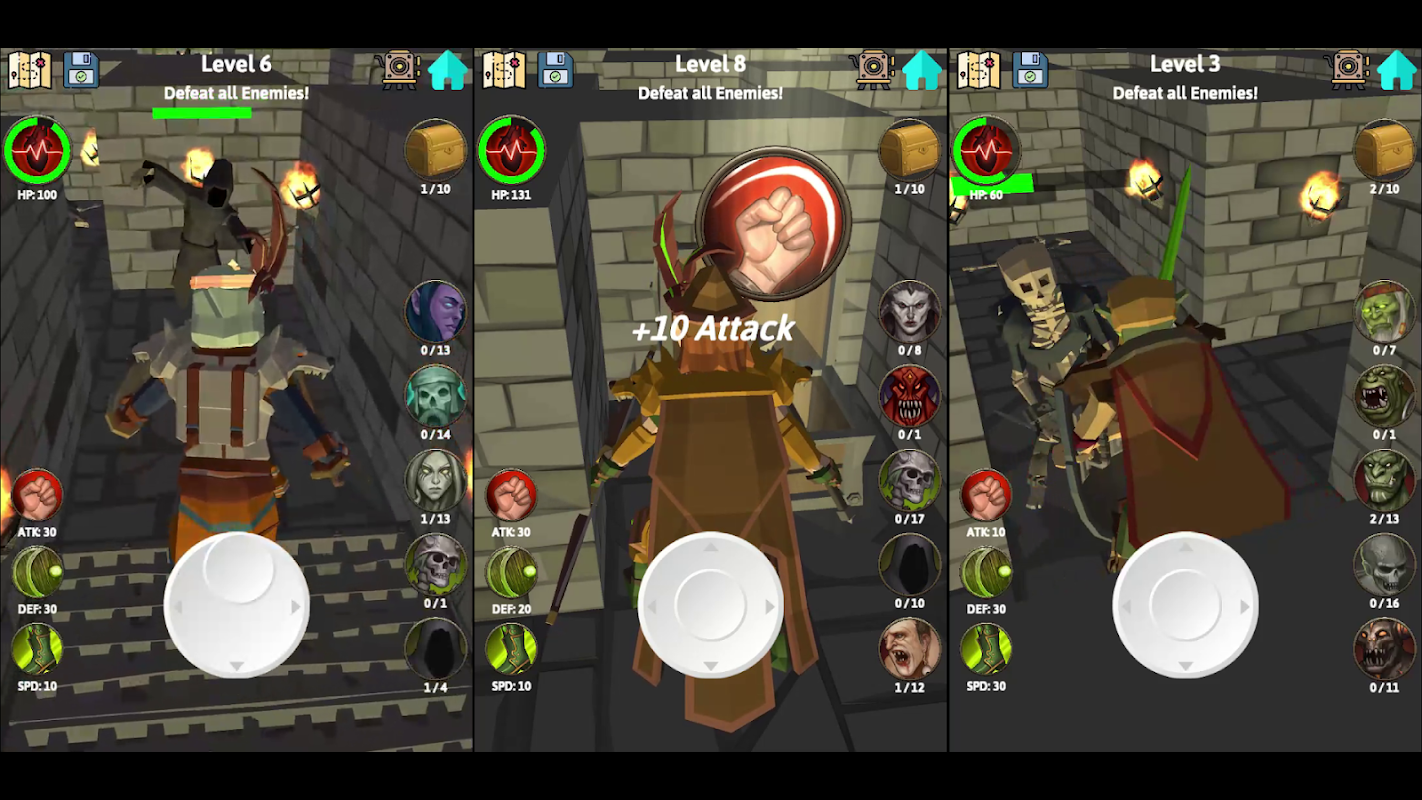 After creating your very own fantasy heroes, send them deep into the dungeon to fight your way through 10 levels of baddies. Fight goblins, trolls, skeletons, ghouls and more. Level up your heroes and make them stronger as you make your way deeper and deeper.