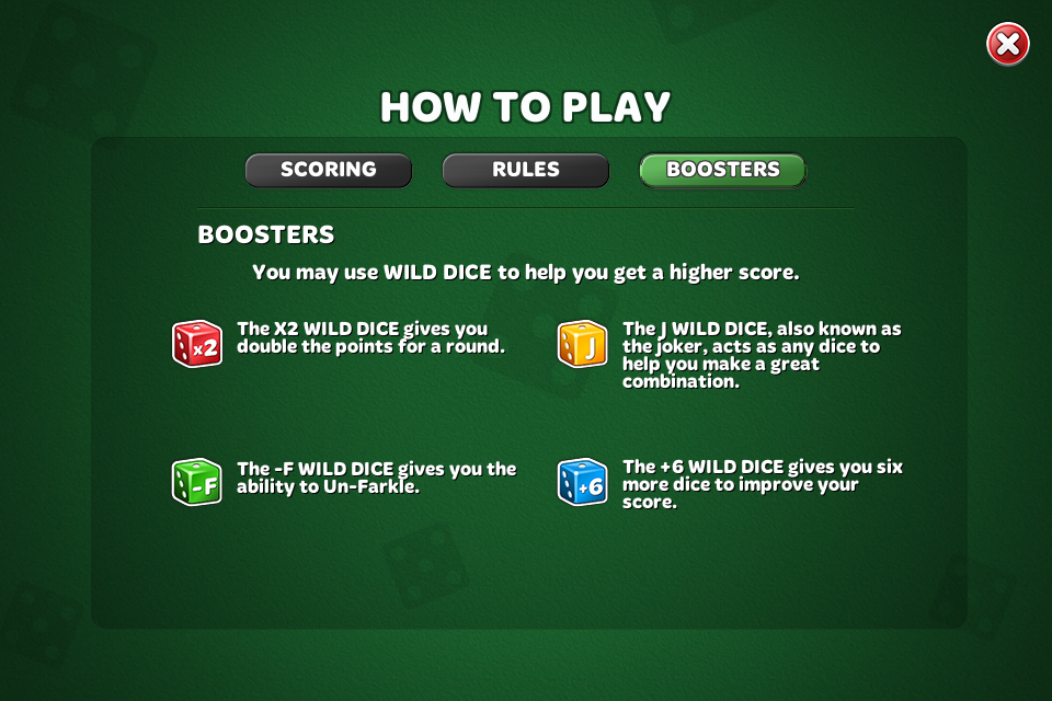 Farkle is the classic dice game of chance and skill. Good Luck!