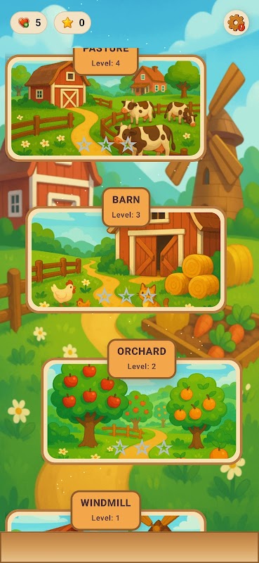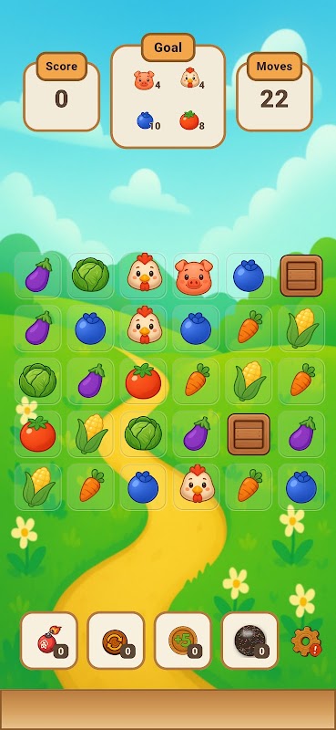 Match juicy fruits, crunchy vegetables, and adorable animals to clear blockers, collect harvests, and complete relaxing levels filled with charm and color.
