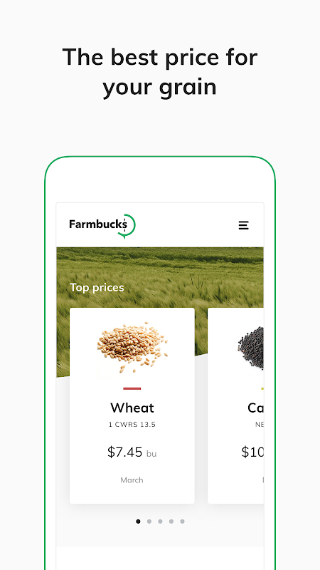 Farmbucks is the fastest way for farmers to search and compare grain prices from multiple grain buyers. Sign up and set your profile to search for your grain type and quality based on your location. Find the right bid and contact the buyer, right from the app!