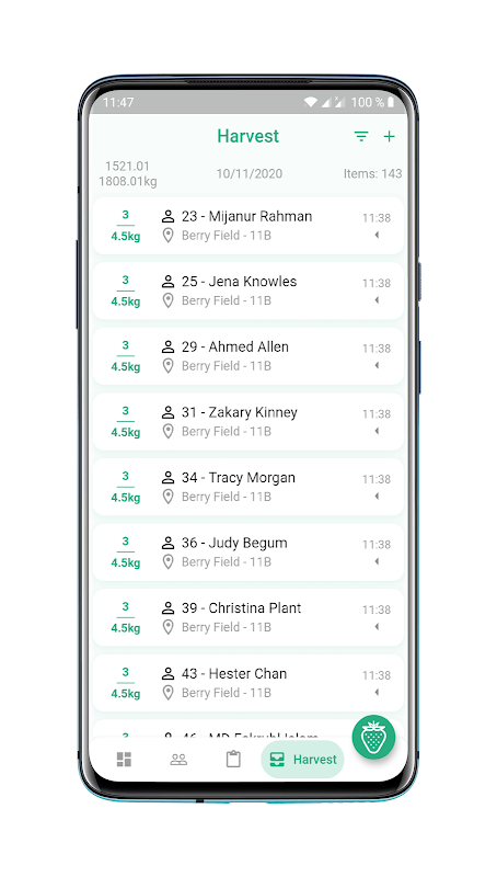 We designed a mobile application which is accessible to people from all backgrounds. With a a few simple clicks, you can register multiple data points that help you measure work hours, productivity, irrigation, check lists, and more.