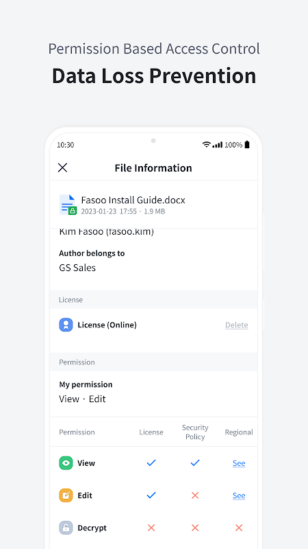 With Fasoo View Plus, view and edit Fasoo secure documents on your mobile device