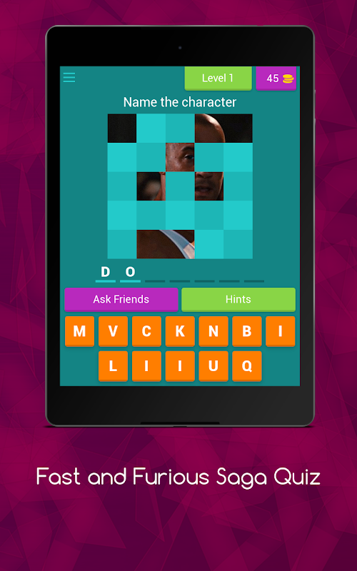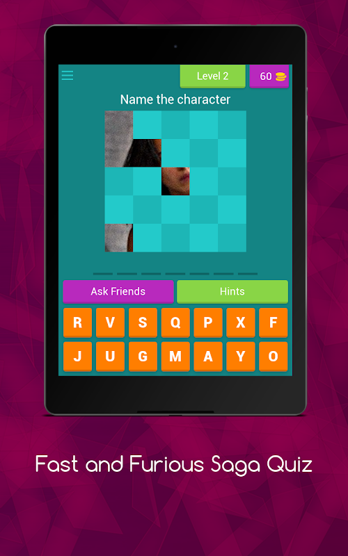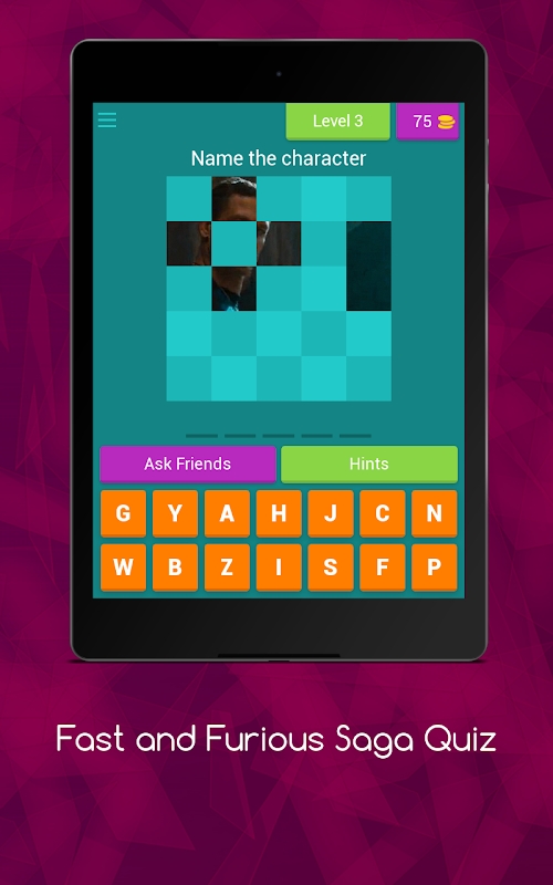Do you like fast and furious movie? This is a quiz game for you to test your knowledge about the fast and furious saga. It's fanmade quiz game for real fans of fast and furious movies. Prove yourself you know all the characters of the fast and furious movie. Don't hesitate and download now! More levels comming soon.
