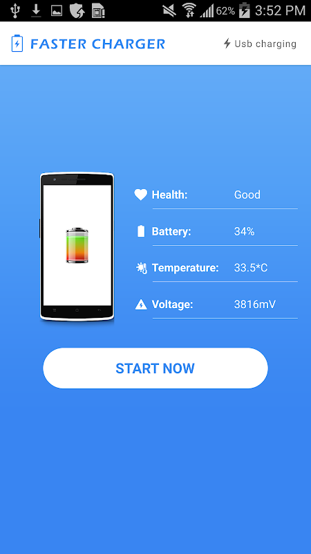 Fast Battery Charging app closes all services that actually consume the battery quickly . You can also manually turn on or off the services you wish individually. It also encompasses phones battery diagnostics to help determine its health and other information. Furthermore, not only its speedy fast charging reduces charging time but also extends the battery time.