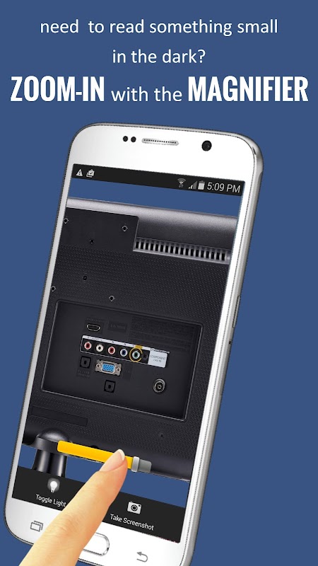 Need to read something small in a dark area? Keep the light ON and use the magnifier which lets you zoom in on items so you can see them better.