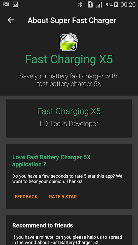 Fast Charging Battery X5 this is the only app that keep your battery charged longer and help your device run faster than an time before also it shows you the details of your device and battery.