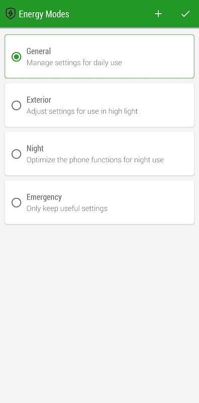 - Extreme Mode: Optimize battery charge managing recent apps, and settings like brightness screen, bluetooth, sync functions and other things automatically, you don't need to do anything more.