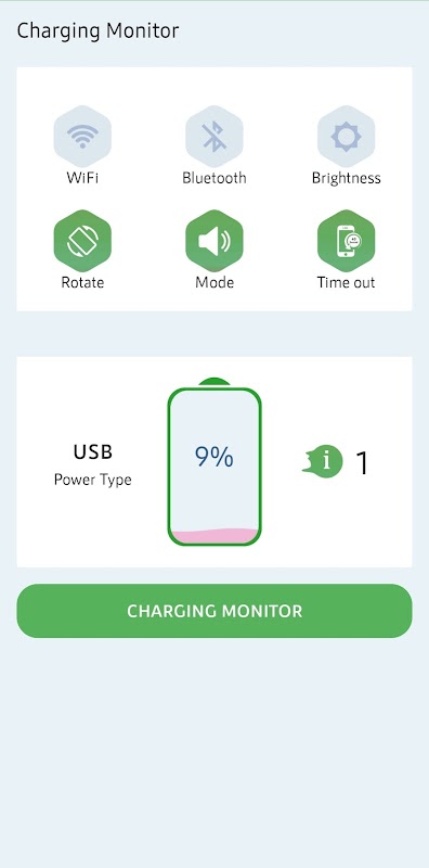 When you plug in the charger, you just need to press the "Charging Monitor" button to activate it. The application also turns off battery draining services and connections such as Wifi, Bluetooth, Auto Sync. Reduce screen brightness, Let your screen turn off sooner, Turn off keyboard sounds or vibrations... according to the user's favorite settings.