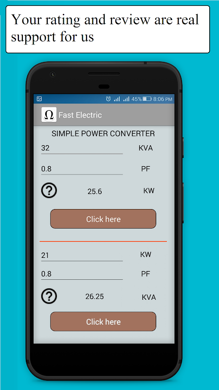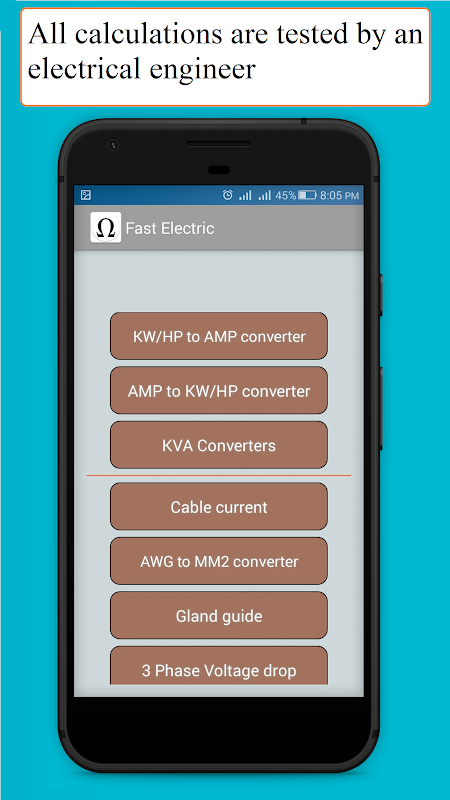 This electricity quick calculator is one of our electrical engineering apps