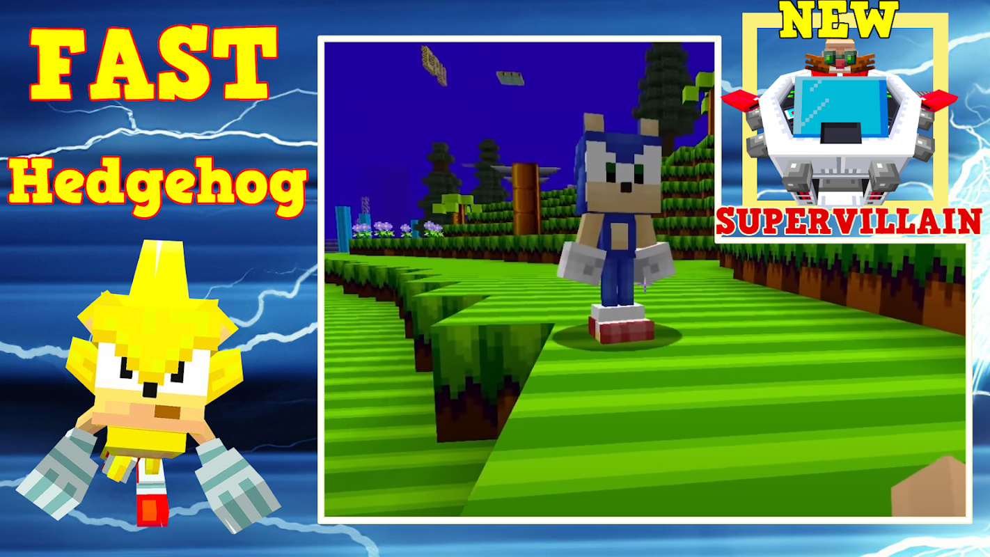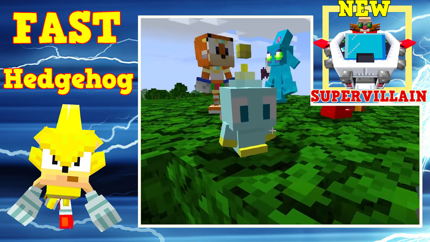 Create new adventures for the hedgehog and his friends, you can either create a mob or put on a skin and play as any of the cartoon universe. A whole gang of sonic and of course new creatures for battles are teleported to your map at once. Challenge all the parkour cards at once because the speed of the flash and the incredible height of your jump will not leave any chances for any traps and obstacles. In order to tame a hedgehog, you need to use food as for taming a Pokemon - meat or fish. Train your hero and your character will become even more agile. Once you add sonic and his friends to the map, your game will become really interesting and you will begin your story of battles with Dr. Eggman. Each new mob resembles an anime character, but not villains, they are scary and fly in vehicles. Prepare for battle - find gems and craft armor to fight on equal terms not only with creepers and endermen, but also more powerful creatures and monsters. This will undoubtedly diversify your gameplay. Play as the most popular hero of the video game and create his friends: sonic metal, shadows, tail, badniks, miles, tails, amy rose, silver hedgehog, big cat and others. Robotnik is a dangerous rival, at first try to just run away from him, but as you fill your inventory with items and gain experience, increasing your level, then start the battle.