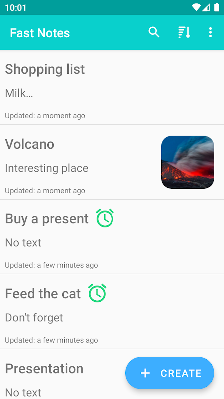 Fast Notes is the best way to make notes better. And faster. This is your daily assistant that allows you to do not only the usual text recording, but also attaching photos to them and recording audio. Fast Notes can easily cope with the preparation of a shopping list, as well as save your nerves and time by displaying a reminder of an important matter at the right time. It is both larger and more compact than just paper. It's Fast Notes.