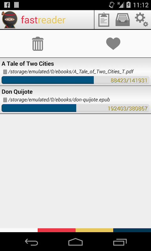 fast reader is a reading application with which you will be able to read texts, ebooks and news more quickly by using the method called Rapid Serial Visual Presentation (RSVP) that eliminates the time spent in moving your eyes between words. To do this, RSVP shows you the words one by one in the center of the screen with a fixed speed. Just concentrate on one point and will read faster!